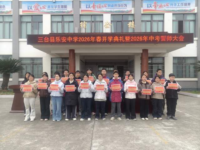 3月4日上午,三台县乐安中学2026年春季开学典礼暨中考誓师大会同步家长开放日活动圆满举行,全体师生、家长代表齐聚校园,凝聚奋进力量,共赴新学期征程。