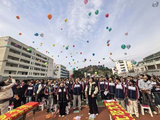 在书写愿望环节,同学们纷纷拿起笔,在气球上写下自己的梦想。有的同学写下了自己理想的高中,有的同学则表达了对未来生活的憧憬。每一个梦想都承载着他们的希望和努力,那一笔一划都充满了力量。当五彩气球承载着青春理想升上蓝天时,仿佛是同学们的梦想也在展翅高飞。看着气球越飞越高,同学们的心中充满了憧憬和期待,他们相信只要努力,梦想就一定能够实现。