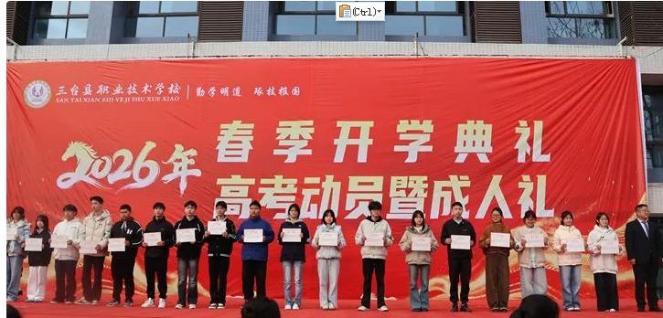 春光为序,华章再起。3月3日上午,三台县职业技术学校隆重举行2026年春季开学典礼、高考动员暨高三成人礼活动。学校党委书记崔勇,班子成员,全校师生员工等近6000人参加。