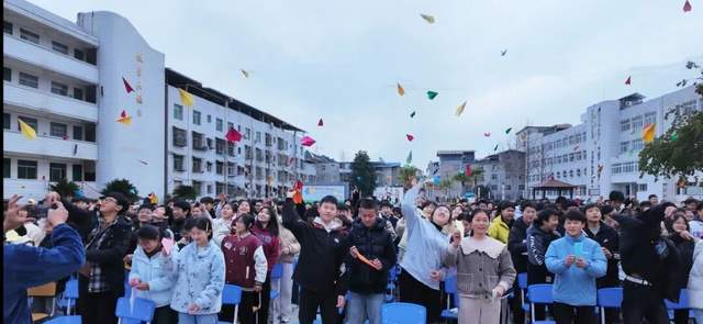 九年级全体班主任深情朗诵,为学子送上最真挚的祝福。当《相信自己》的旋律响起,承载着全体九年级学生梦想的纸飞机腾空而起,将典礼推向高潮。