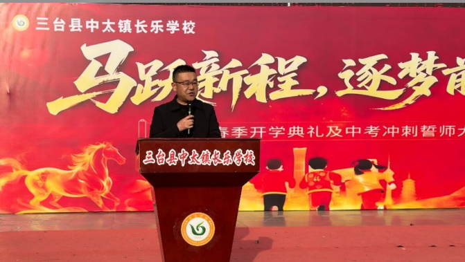 春风送暖,万象更新。3月5日上午,长乐学校全体师生齐聚学校内操场,隆重举行2026年春季新学期开学典礼暨中考冲刺誓师大会。本次活动以“马跃新程,逐梦前行”为主题,融合传统礼仪教育、师生励志动员与备考誓师,开启新学期奋斗新篇章。