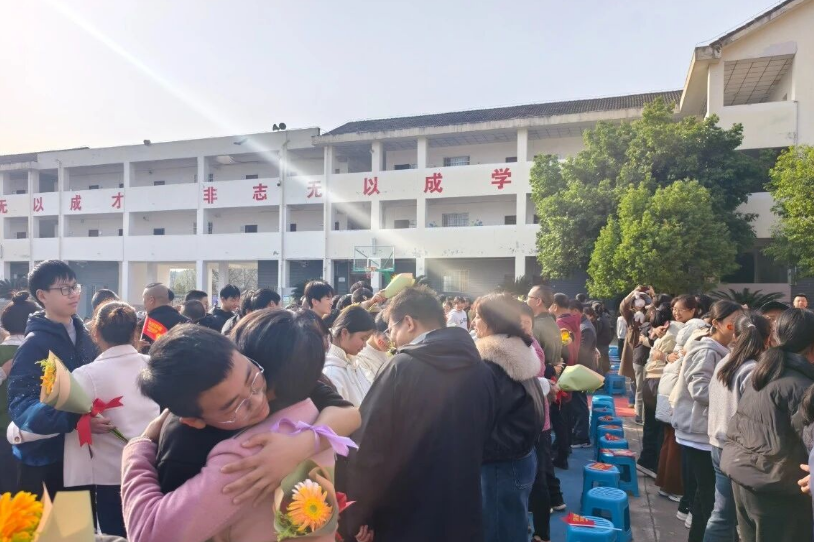 吴代川校长大步走向台前,目光如炬,声音洪亮:“九年级的勇士们,愿你们——一飞冲天!金榜题名!中考必胜!”话音刚落,礼炮齐鸣,彩带飞舞,全场掌声、欢呼声汇成一片沸腾的海洋。