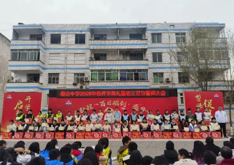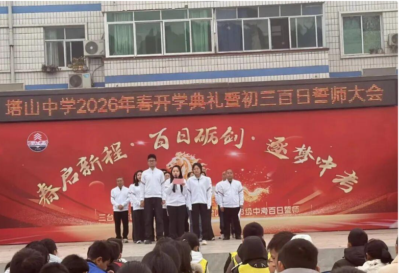 三台县塔山中学2026年春季学期开学典礼暨初三百日誓师大会在孝德广场隆重举行