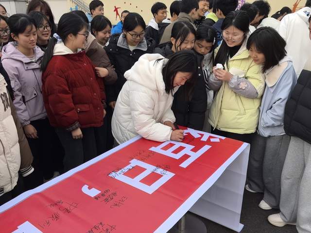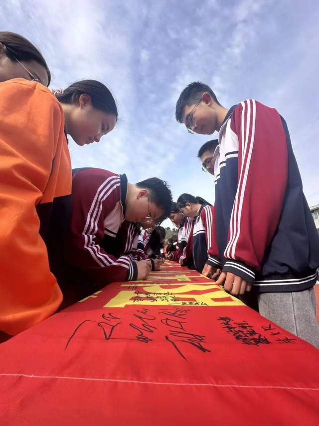 师生们还在班级横幅上郑重签名,这不仅仅是一个简单的签名,更是许下了百日冲刺的庄严承诺。每一个名字都代表着一份责任和担当,大家用这种方式表达了自己为了梦想全力以赴的决心。横幅上那一个个名字,仿佛是一面面旗帜,激励着大家在接下来的一百天里,勇往直前,不畏艰难。