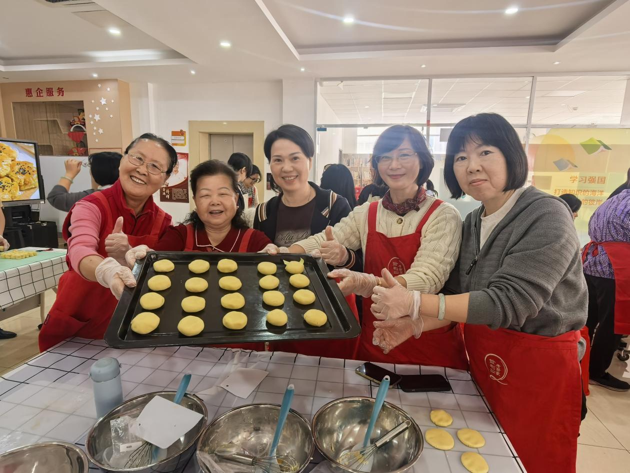 活动现场暖意融融、香气四溢,处处洋溢着欢声笑语。参与女性朋友们热情高涨、全神贯注,从配料、搅拌到成型、烘烤,每一步都专注投入、互帮互助。大家一边制作,一边交流生活点滴、分享节日喜悦,现场气氛热烈融洽。不少长者结合多年厨房经验,与年轻一辈分享独到技巧,跨代互动、温情满满,让活动现场变成了温馨的邻里交流课堂。随着一道道工序完成,金黄酥脆的核桃酥、饱满香甜的蛋黄酥陆续出炉,浓郁香气弥漫全场。看着自己亲手打造的精致点心,大家眉眼间尽是成就感,纷纷拿起手机定格美好瞬间,珍藏这份专属节日的甜蜜与快乐。
