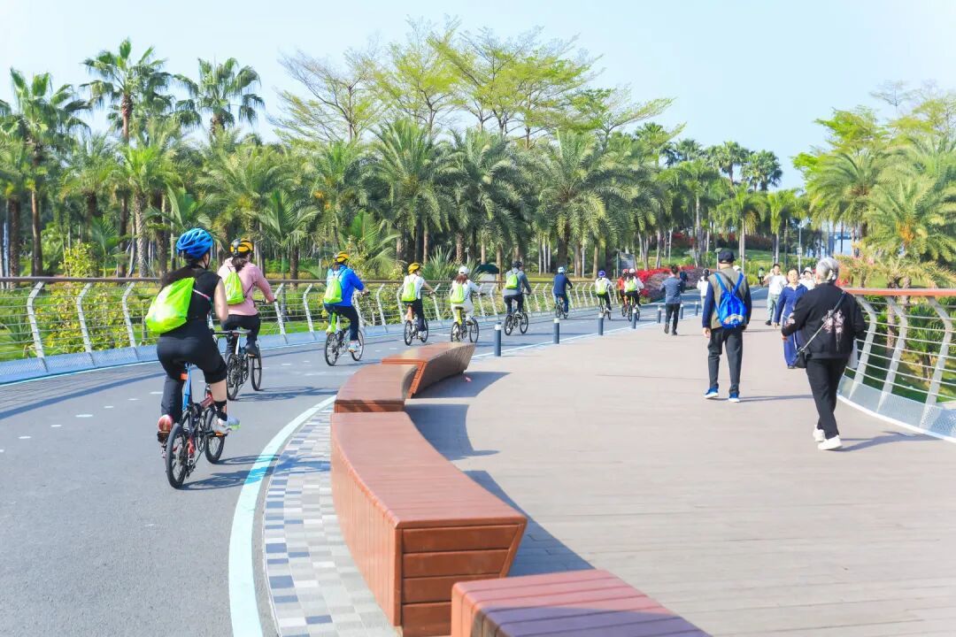 9时整,随着发令声响起,嘉宾们沿山海连城骑行道开启5公里生态之旅。骑行队伍途经前海石公园、滨海文化公园,碧海蓝天与鳞次栉比的现代建筑交织成画,展现了前海从滩涂到国际化新城的蜕变。参与者在运动中感受城市活力,体验前海“扩区提质”战略下的发展加速度。