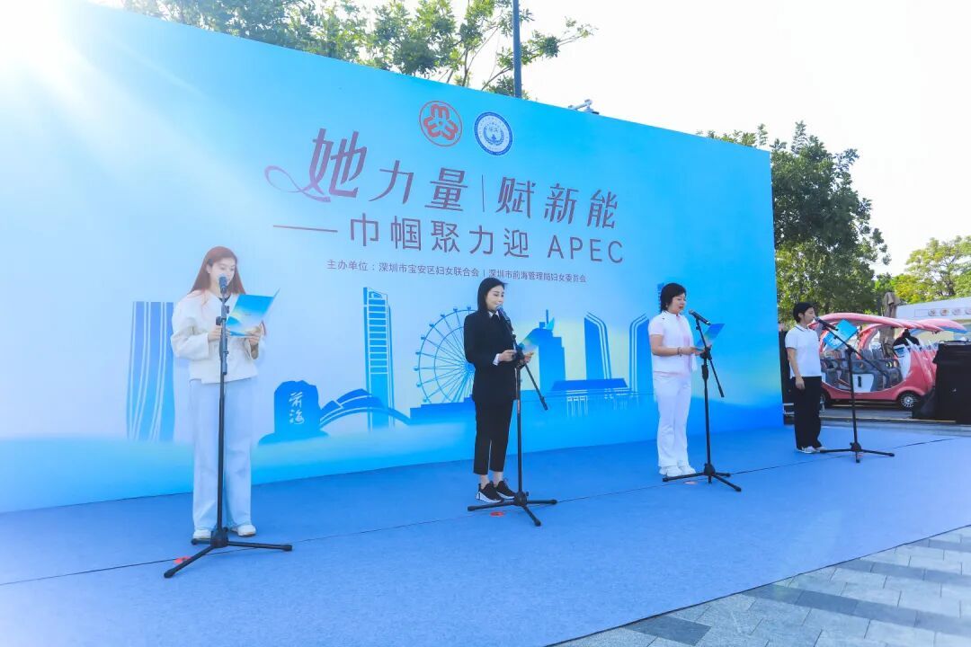 活动在欢乐港湾雕塑广场正式拉开帷幕,在4名企业家、创业者、科技工作者、志愿者女性代表的带领下,紧扣APEC女性发展宗旨,宣读《关于号召前海合作区妇女同胞投身拥抱APEC的倡议》,一同发出巾帼聚力、共迎 APEC 的时代强音。