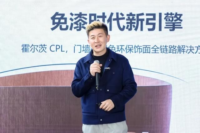 主题演讲环节,多位行业大咖围绕新理念、新产品、新工艺、新模式等内容,分享独到见解。霍尔茨总经理助理张通以《免漆时代新引擎》为题,聚焦CPL免漆饰面解决方案,直击B端企业成本高、产品内卷、色差返工、转型试错成本高四大痛点,契合C端高质价比、全屋统一、极致环保的需求转变。详解霍尔茨CPL材料特性与优势,从降本增效、同色同源、极致环保三大维度破解行业难题,提供全品类产品与全链路赋能服务,助力企业免漆转型零风险。