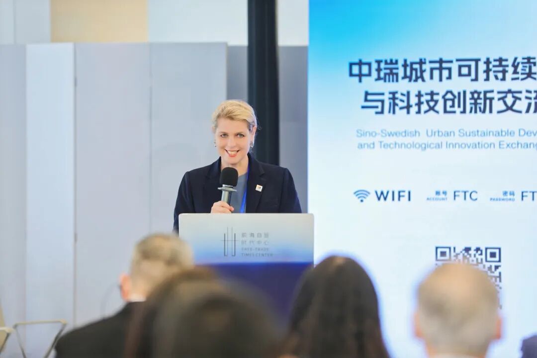 马琳致辞并高度赞赏前海的发展活力和市场潜力。她表示,商会将继续支持广大瑞典企业坚定在华发展信心,不断拓展合作领域,进一步做大做强中国市场,同时积极营造良好合作氛围,为双方企业发展创造更多机遇,实现互利共赢,助力中瑞经贸合作和双边关系发展。
