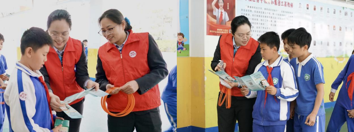 在反诈小卫士互动环节,农行“青骑兵”志愿者一对一为同学们细致讲解金融安全知识,并为大家贴上专属“反诈小卫士”主题贴纸。一枚枚小小的贴纸,既是荣誉标识,也是防范提醒,鼓励同学们主动学习金融知识、增强反诈意识,争当清朗网络空间的守护者、安心消费的践行者。