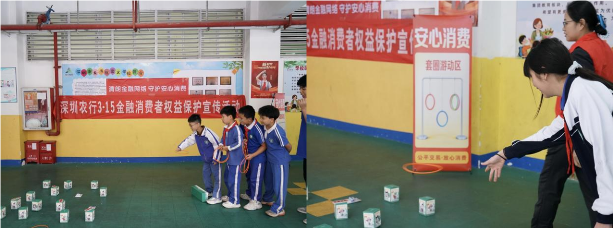 欢乐的套圈游戏将金融知识与趣味体验完美结合。现场农行青骑兵志愿者将理性消费、拒绝校园贷、远离非法借贷、合理规划生活费等知识点融入游戏环节,同学们瞄准目标、精准投掷,在欢声笑语中学习正确消费理念,树立健康金钱观与价值观,让理性消费、安心消费的观念扎根心底。