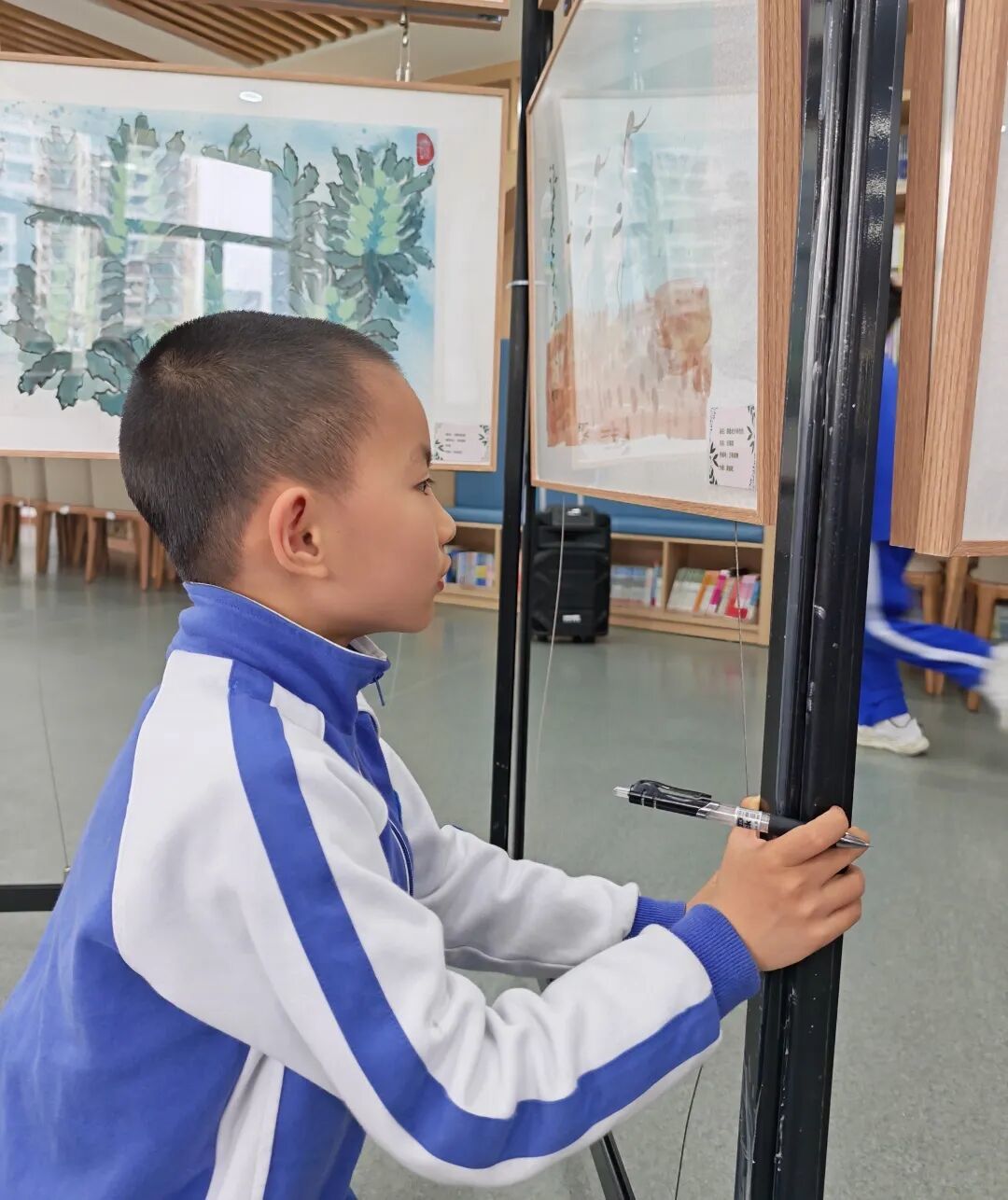 同学们边听讲解边兴致勃勃地欣赏着每一幅作品,认真填写探究学习单,将刚才聆听分享时的所思所感细细记录,不仅深化了学习成效,更让知识与感悟在笔尖流淌中得以内化。