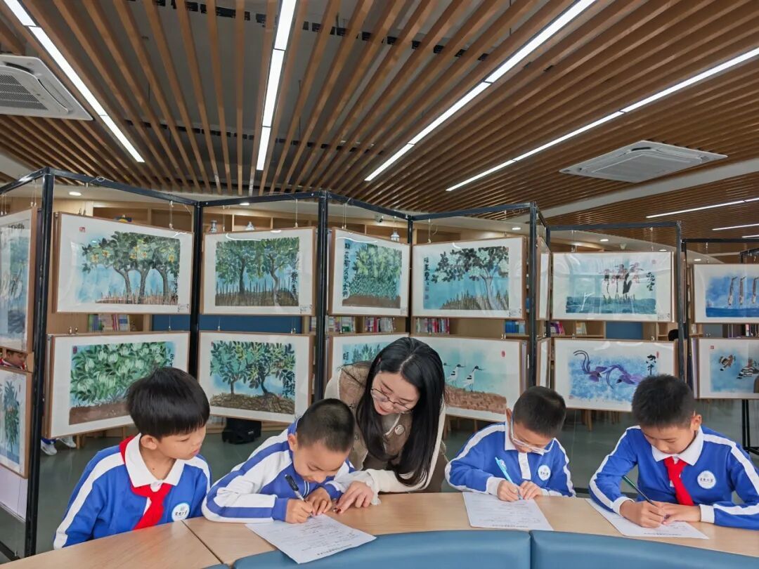 此次红树林专题原创诗书画展,既是浸润人心的艺术巡礼,更是深入人心的生态环保启蒙。它以诗书画为桥梁,融合自然之美、艺术之韵与科普之智,丰富校园文化、营造美育科普氛围,让红树林保护理念扎根学子童心。同时,作为集团“红树林跨学科项目式学习”的重要组成部分,巡展契合育人理念,为素质教育注入新活力,为培育兼具文化素养与生态责任感的新时代学子奠定坚实基础。