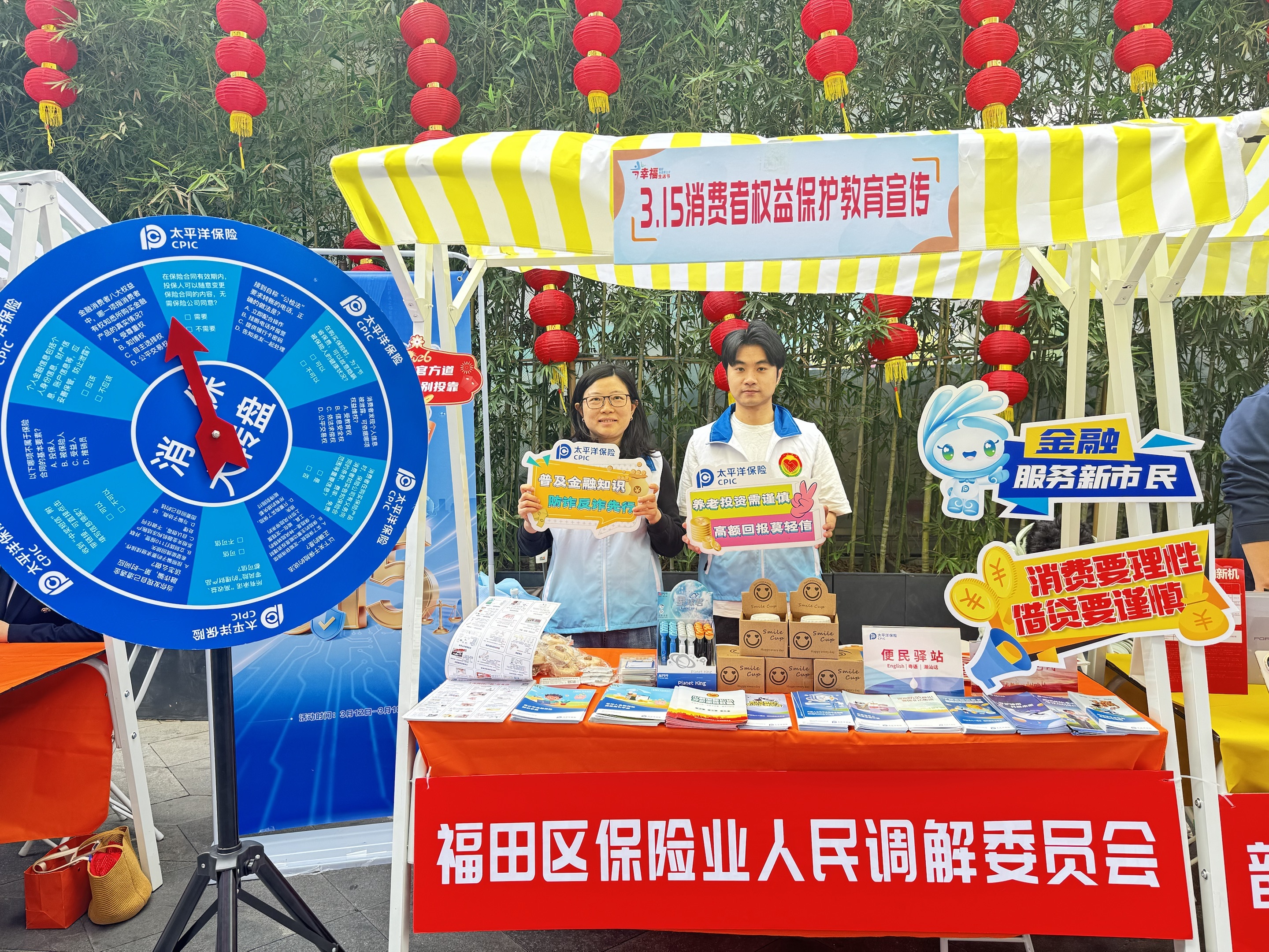 近日,为切实提升人民群众的金融素养和风险防范意识,践行金融工作的政治性、人民性,在3·15国际消费者权益日到来之际,中国太保产险深圳分公司作为深圳市福田区保险业人民调解委员会发起单位之一,走进华强北商业街,将消费者权益保护知识融入充满烟火气的“党员市集”,开展了一场别开生面的教育宣传活动。