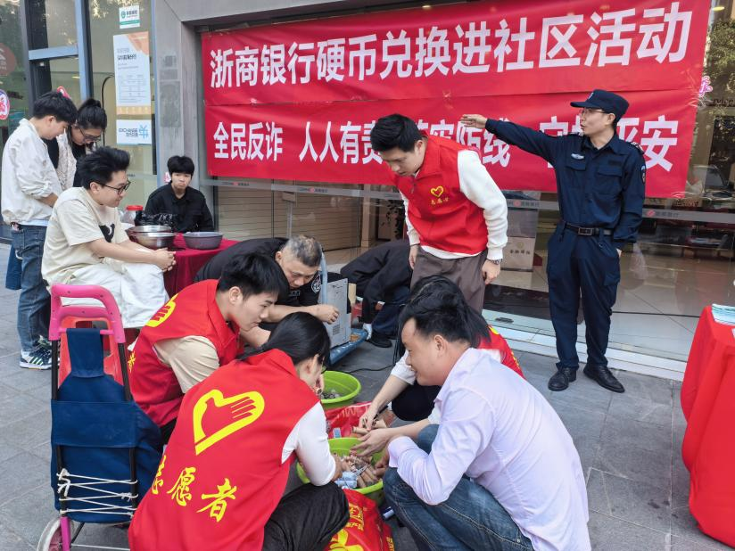 活动现场,“硬币大篷车”专区秩序井然,青年志愿者利用专业清分设备,为社区居民、周边商户提供硬币兑换、残损币回收服务。一位超市经营者表示:“平时忙,硬币攒着难处理,现在家门口就换成了整钱,真方便!”半天时间内,志愿者共为13位居民清点兑换硬币5万余枚,有效激活“沉睡”零钱,化解群众“换币难”问题。