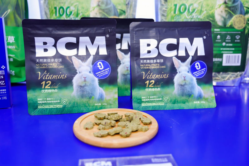 本次展会最具人气的新品,当属 BCM 带来的草饼,一经亮相便成为展位 “爆款担当”,吸引无数宠友驻足围观、争相试喂。这款草饼彻底打破传统小宠零食的同质化局限,以 “天然草本 + 科学配比” 为核心,专为小宠量身打造,现场更有兔兔化身体验馆试吃,不少宠友现场试喂后纷纷表示 “自家兔子超爱吃,终于找到替代零食的优质选择”。