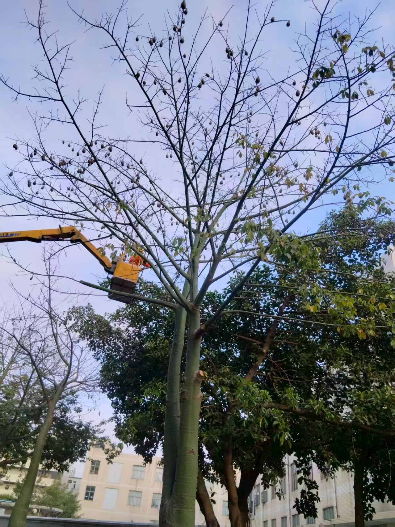 据悉,此次专项行动松岗街道坚持“预防为先”原则,提前研判棉絮飘散周期、风险点位,组织专业绿化管养队伍,对松白路、大龙抽路等道路沿线的美丽异木棉开展全覆盖排查整治。行动现场,作业人员规范佩戴防护装备,借助高空作业车、伸缩杆等专业工具,在严格保障树木正常长势、不破坏绿化景观完整性的前提下,对尚未开裂的果实实施精准摘除、闭环处置,从源头阻断棉絮生成与飘散路径,切实将民生困扰化解在萌芽状态。