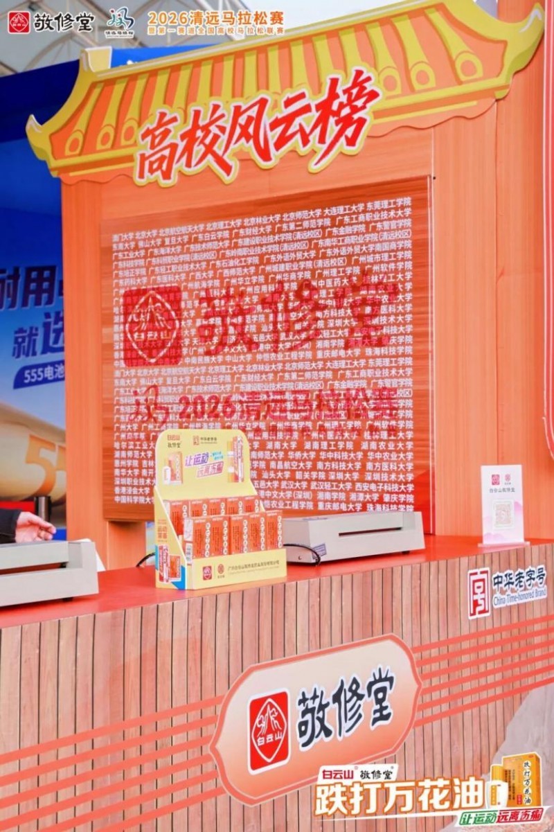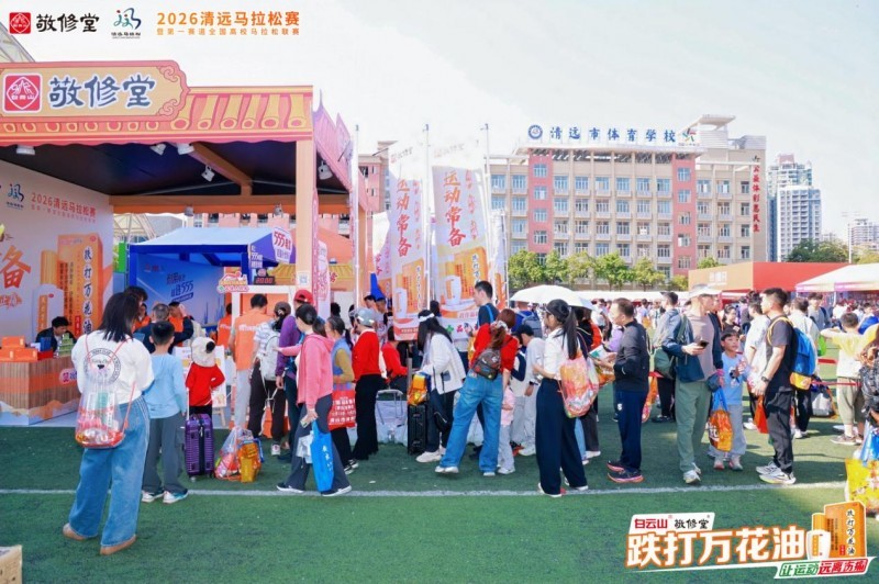2025年,敬修堂首次支持清远马拉松,便以“官方唯一指定医药品牌”的身份,为2.3万名跑者筑起“无伤屏障”。 从参赛包中那瓶备受跑友欢迎的跌打万花油,到终点展位前人潮涌动的号码布过塑服务,敬修堂用细致入微的健康关怀,在跑圈留下了深刻的品牌印记。