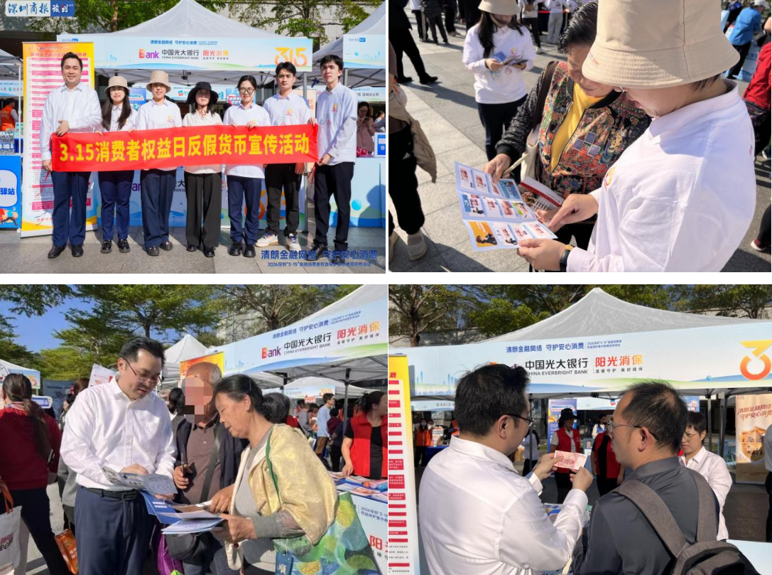2026年“3・15”国际消费者权益日之际,为切实维护金融消费者合法权益,持续深化反假货币工作,维护金融秩序与群众合法权益,光大银行深圳分行积极响应中国人民银行深圳市分行工作部署,组织辖内支行发挥网点辐射功能,深入各类场景,覆盖不同群体、延伸服务触角,如火如荼开展多元化、精准化反假反诈系列宣传活动,深化多方联动,将反假币、反诈宣传延伸至医护、社区、商圈、企业等各个场景,为金融消费者保驾护航。