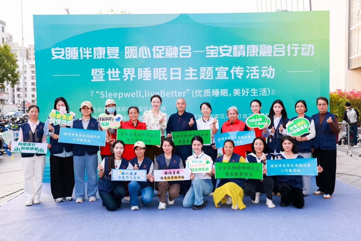 为深入贯彻国家《“十四五”民政事业发展规划》《中华人民共和国精神卫生法》及深圳市“精康融合行动”专项部署,聚焦社区精神障碍康复者睡眠健康、社会融入等核心需求,3月20日下午,由宝安区民政局主办,宝安区西乡街道办和尚德社工承办的“安睡伴康复,暖心促融合——宝安区精康融合行动暨世界睡眠日主题宣传活动”,在宝安区大仟里商场前广场温情启幕,共吸引近200名社区居民、精神障碍康复者及家属参与,现场暖意融融、氛围热烈。