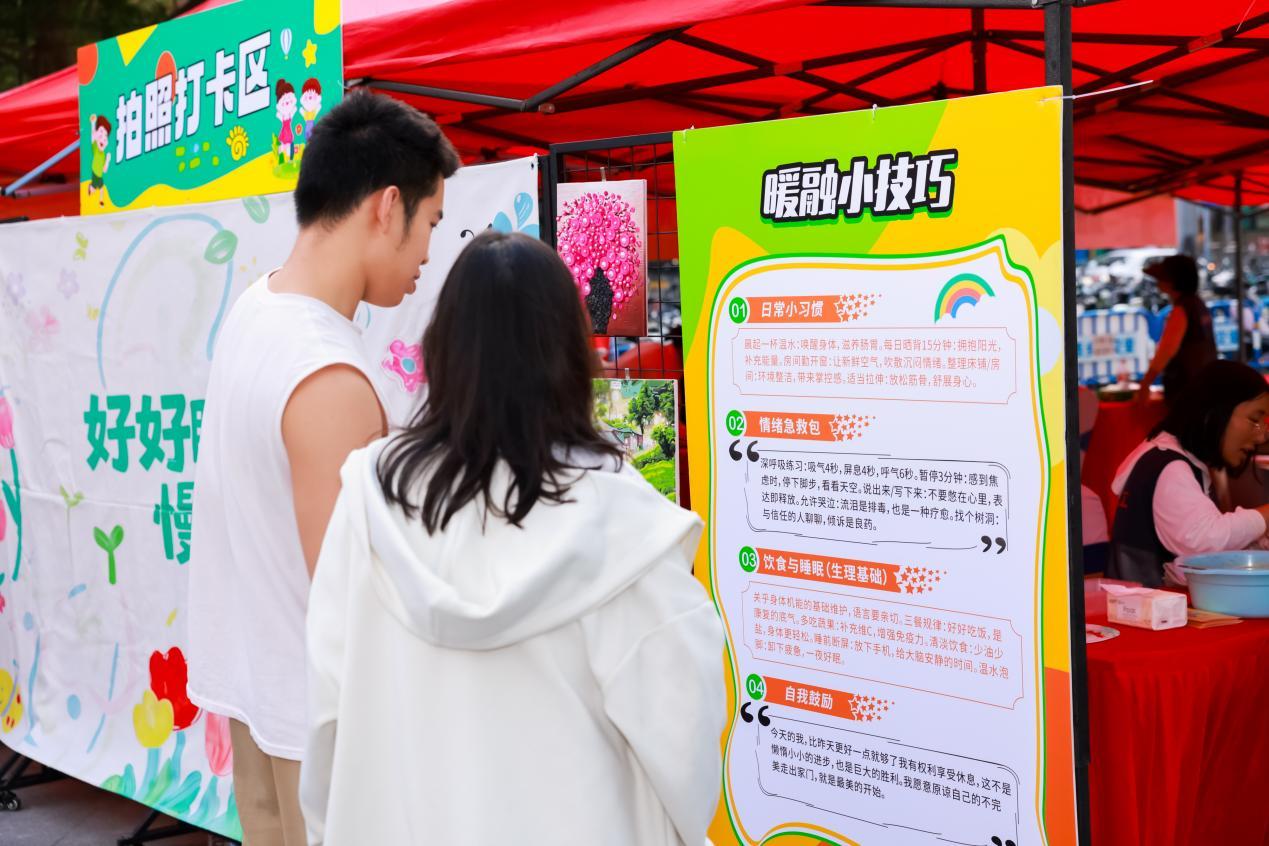 主题拍照打卡区与暖心心语墙,成为现场最具温情的情感表达载体。“好好睡觉慢慢自愈”主题背景板温馨治愈,搭配睡眠主题手举牌、精康融合理念标语牌等趣味道具,专业摄影师温和引导每一位参与者记录美好瞬间。心愿粘贴角与心语墙上,“愿康复之路一路坦途”“祝你吃得好睡得好”“愿每一分努力都有回响”等一句句留言,字里行间满是期盼与祝福,每一份心声都被认真倾听、妥善珍藏。