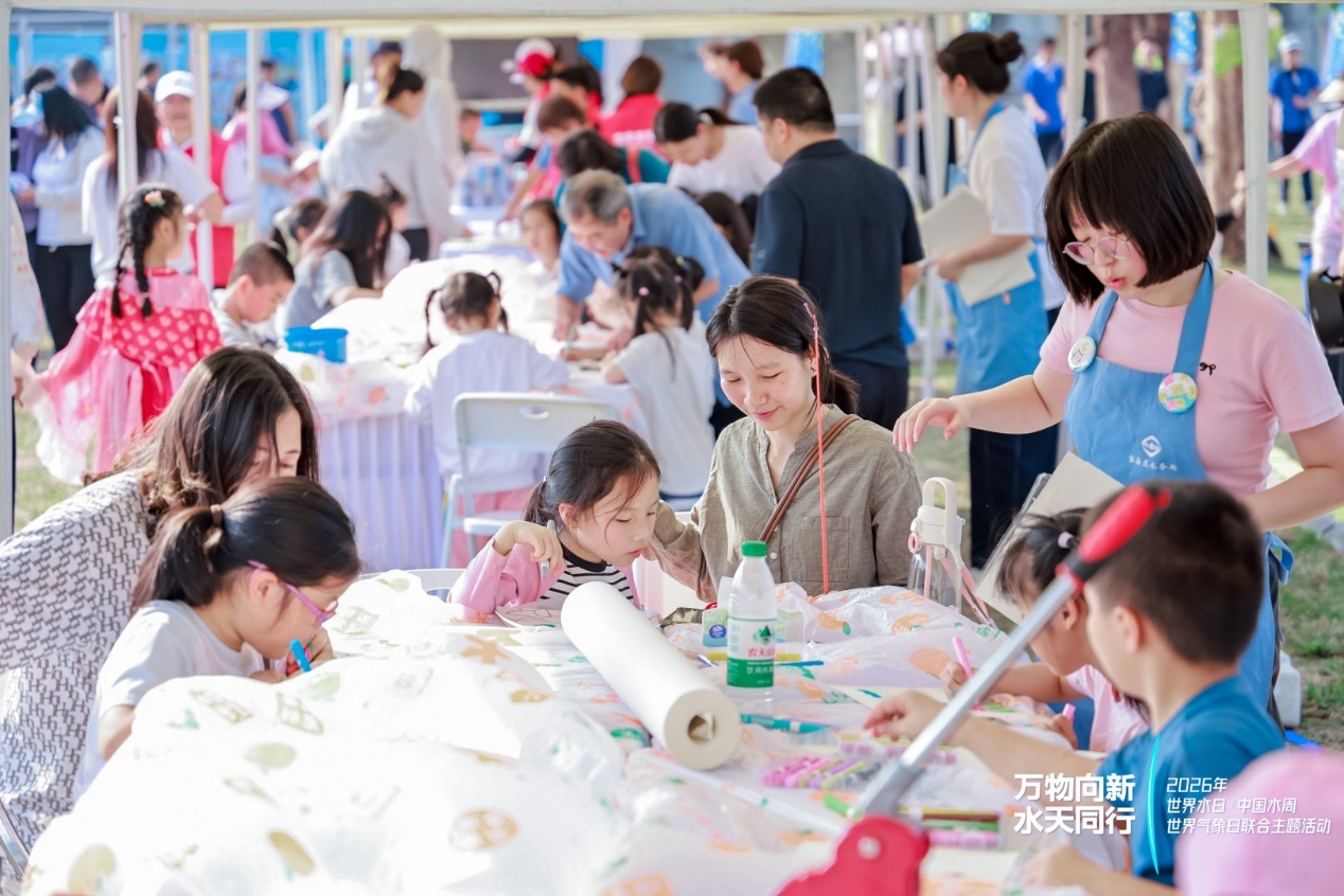 本次联合主题活动还为市民带来了一场别具匠心的联合展览:气象高质量发展成果展与“节水护水有‘画’说”比赛获奖作品比邻而居,水务科技装备展与气象装备展交相辉映。一幅幅画作描绘着孩子们心中的碧水蓝天,一项项装备展示着科技赋能的硬核力量,一个个成果诉说着水务气象人的携手奋进。