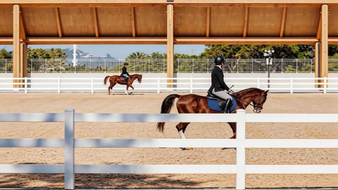 场馆严格依照国际马术星级赛事标准建设,配备马术比赛场、马厩等多功能空间,可全方位满足高水平马术赛事的举办需求,同时兼具马术产业交流合作、文化艺术展示、技能培训等多元功能。