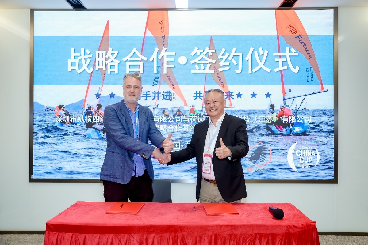 3月29日,在2026上海国际游艇展现场,中国杯帆船赛长期承办方深圳市纵横四海航海赛事管理有限公司,与荷岚飞人船艇科技(江苏)有限公司正式签署战略合作协议。荷岚飞人船艇旗下FD Future系列帆船将成为中国杯帆船赛青少年组别统一设计级别指定船型,双方将携手完善青少年帆船运动从普及推广、人才选拔到国际交流的全链条体系,为中国帆船运动新生代注入新动能。