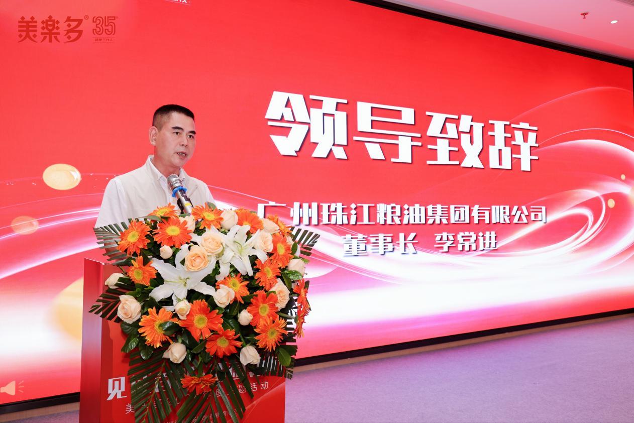 发布会上,广州珠江粮油集团有限公司董事长李常进先生发表致辞。他表示,作为美乐多的坚实后盾,珠粮集团将充分发挥国企平台优势与资源整合能力,从资金、渠道到品牌建设,为美乐多提供全方位、长周期的坚定支持。