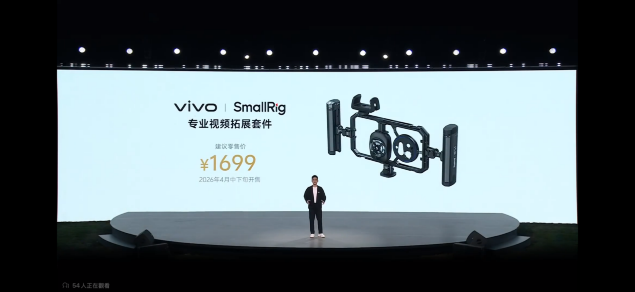 发布会现场,vivo SmallRig专业视频拓展套件已同步推出联名销售方案,售价1699元,将于4月中下旬正式开售。消费者可在vivo线下门店体验全套设备,让这一专业影像解决方案真正走向市场,惠及更多影像创作者。