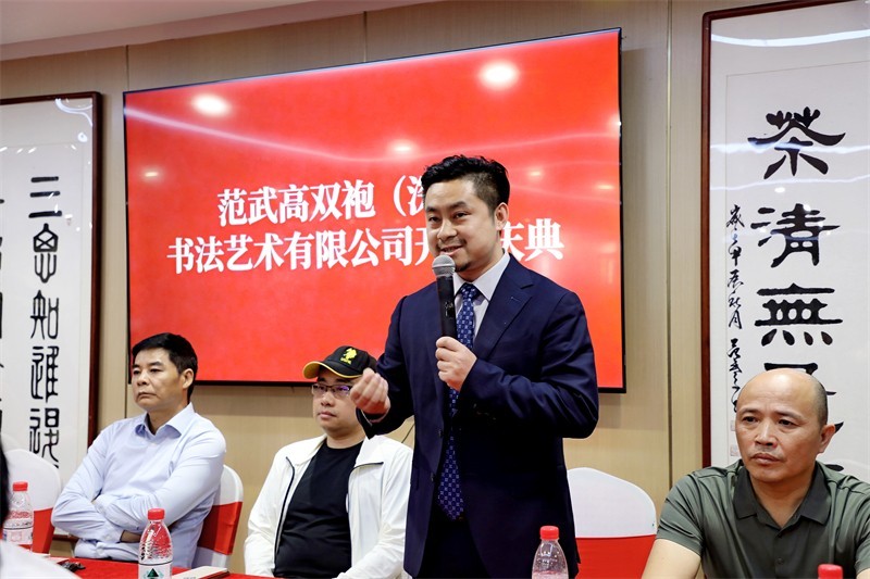 近日,范武高双袍(深圳)书法艺术有限公司在深圳隆重举行开业庆典,标志着当代书法名家范武高先生的艺术事业正式扎根粤港澳大湾区,以“双袍”艺术IP为核心,开启书法艺术传承、创新与传播的全新篇章。