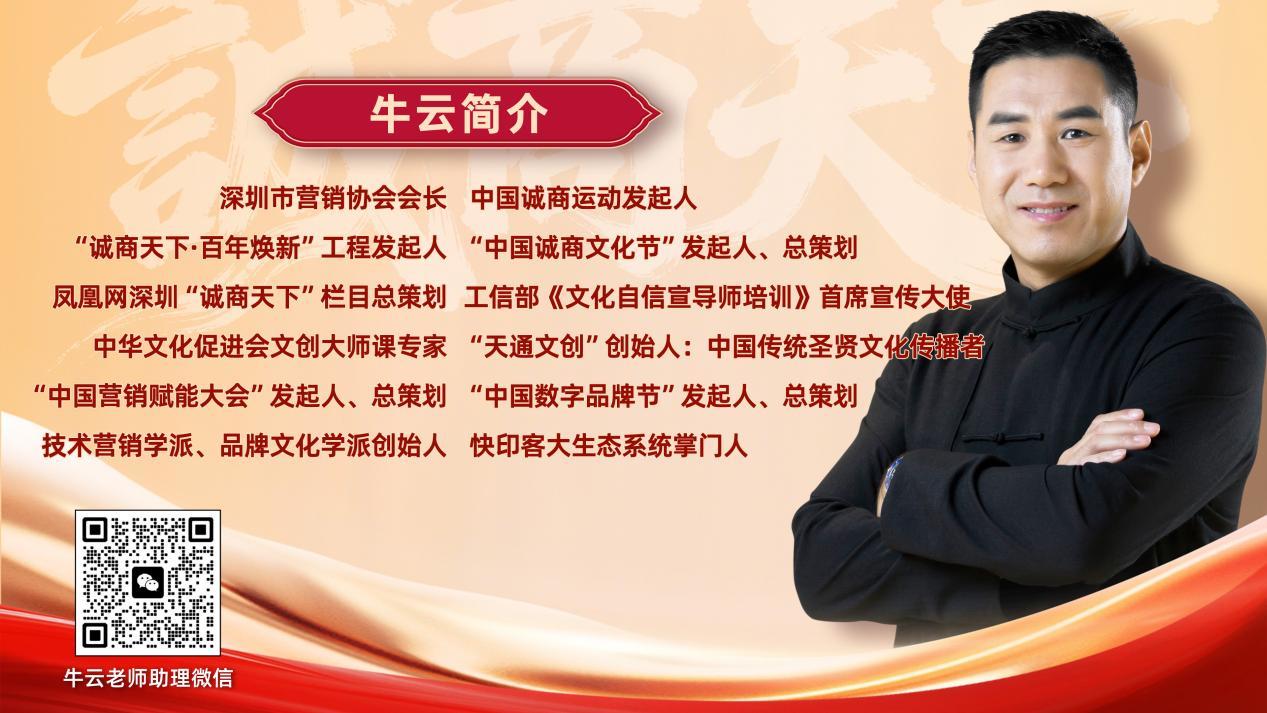 (本文作者牛云:技术营销学派与品牌文化学派创始人,县域品牌孵化中心发起人,凤凰网深圳“诚商天下”栏目总策划,中国诚商运动发起人,2025年发起“诚商天下·百年焕新”工程,工信部“尚工”行动文化自信首席宣传大使。)