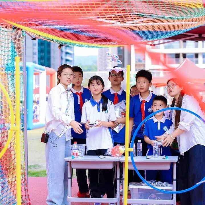 几十个校企合作展示区同步开放,同学们穿梭其间,近距离体验人工智能、机器人互动、科学实验等前沿科技项目。从趣味体验到动手实践,每一个展位都排起了长队,孩子们专注探索、踊跃参与,在沉浸式体验中感受科技的魅力,校园处处洋溢着好奇与活力。