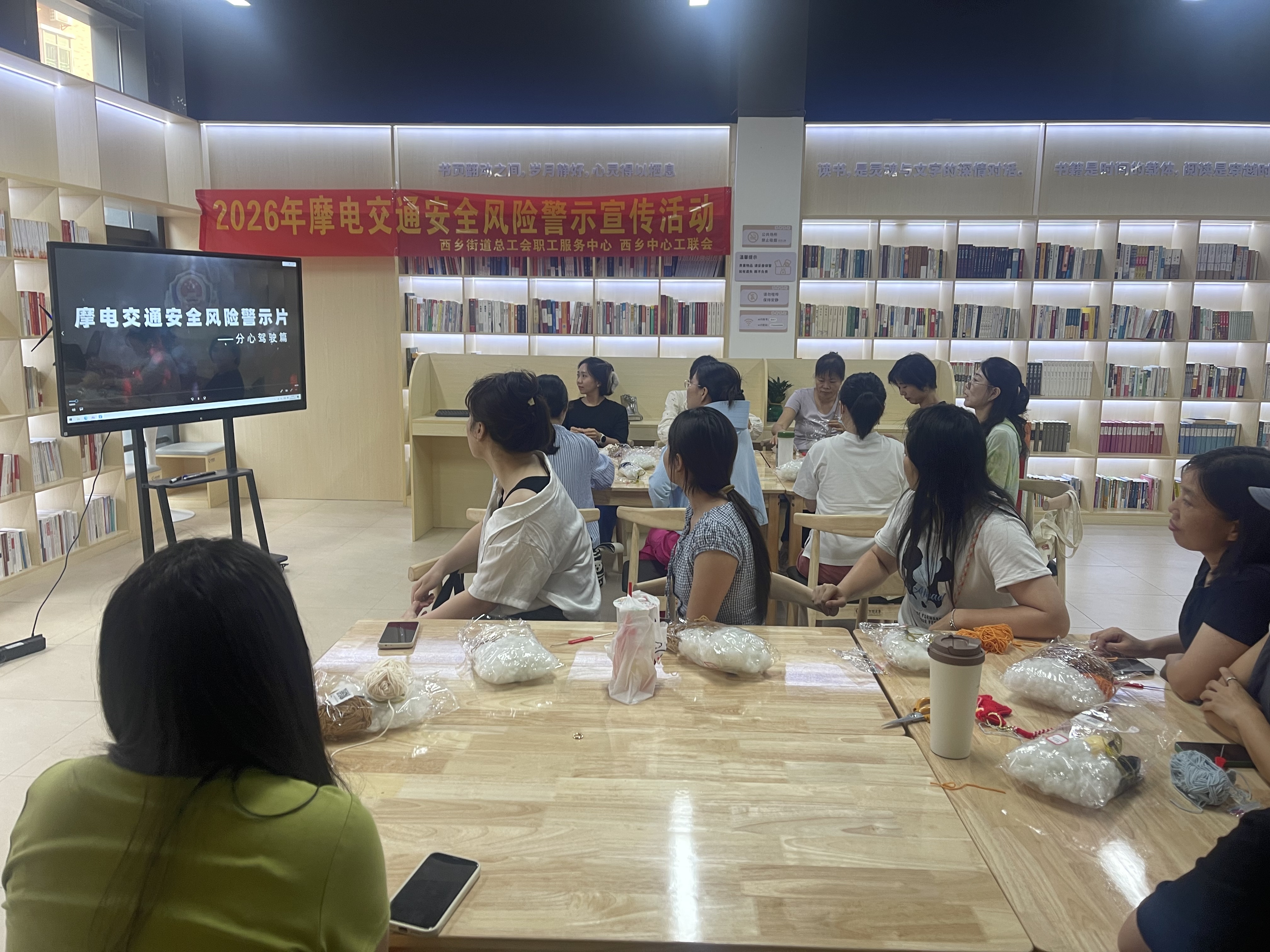 4月12日下午,西乡中心工联会在职工书屋组织辖区企业职工开展专项警示宣传活动,集中观看摩电交通安全风险警示视频,用真实案例敲响安全警钟。活动现场,工会工作人员向职工发出文明骑行倡议,呼吁广大职工自觉遵守交通法规,骑乘电动自行车时全程佩戴3C认证安全头盔,坚决杜绝酒后骑行、闯红灯、抢道占道、乱停乱放等违法行为,不骑乘改装车、非标车及无号牌车辆上路,争做安全文明骑行的践行者和宣传员。