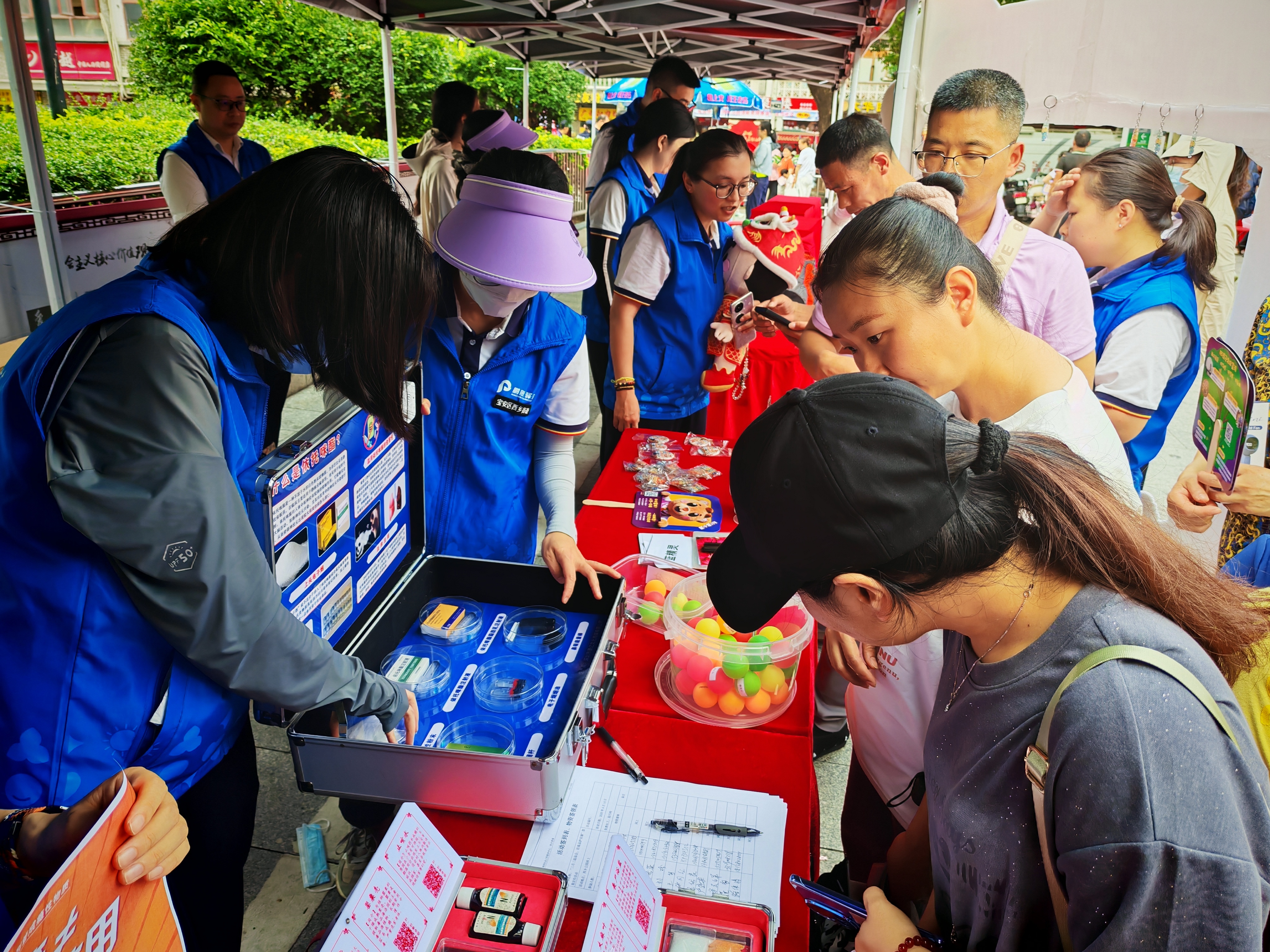 为让禁毒知识真正入脑入心,庙会主会场特设西乡禁毒IP主题展区,集展示、互动、科普、体验于一体。展区内,IP形象与禁毒标语、新型毒品仿真模型相结合,禁毒社工与志愿者用通俗语言,讲解依托咪酯、右美沙芬等新型毒品的伪装、危害及识别方法,解读《深圳经济特区禁毒条例》核心内容,让禁毒知识生动易懂。现场还准备IP定制文创礼品,市民通过“禁毒知识快问快答”“识毒配对赛”“巧手清毒球”等互动游戏即可领取,在轻松氛围中提升识毒、防毒、拒毒能力。