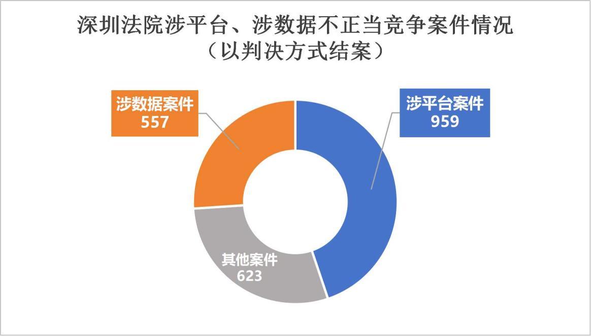 从案涉领域来看,深圳法院近五年审理的不正当竞争案件涉及的产业集中于高新技术、生物医药、互联网、物联网等领域。尤其突出的是,涉互联网平台领域以及涉数据的新型不正当竞争案件不断涌现、增速明显。在以判决方式结案的2139宗案件中,涉互联网平台的案件共计959件,占比44.8%;涉数据案件共计557宗,占比26%。同时,从案件区域分布来看,科技创新企业密集、互联网经济活跃区域与不正当竞争纠纷数量呈现正相关。