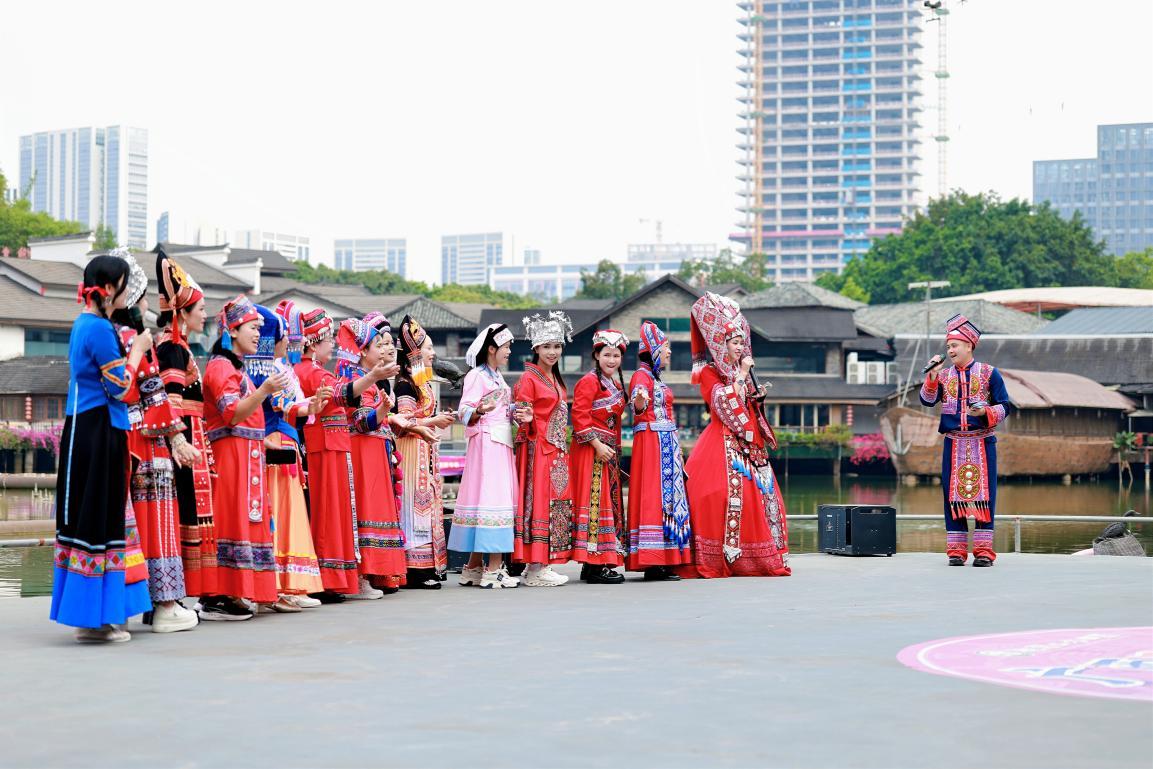 春风送爽,山歌传情。4月18日,由广西政府驻广州办事处、广西民族宗教事务委员会、广西总工会、深圳市乡村振兴和协作交流局、靖西市深百协作办公室主办,广东省广西柳州商会和深圳市山水田园水月花仙文旅有限公司承办的2026年“广西三月三·湾区嘉年华”深圳专场活动在国家AAAA级景区深圳观澜山水田园文化园启幕。此次活动将持续举办2天,以歌为媒、以节会友,为深圳市民及湾区游客带来一场沉浸式壮乡文化盛宴。