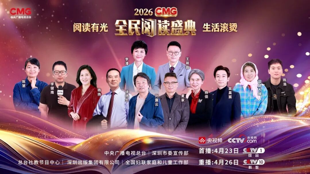 由中央广播电视总台、深圳市委宣传部指导、总台社教节目中心、深圳出版集团有限公司联合制作的《2026CMG全民阅读盛典》,4月23日晚在CCTV-1温暖首播。