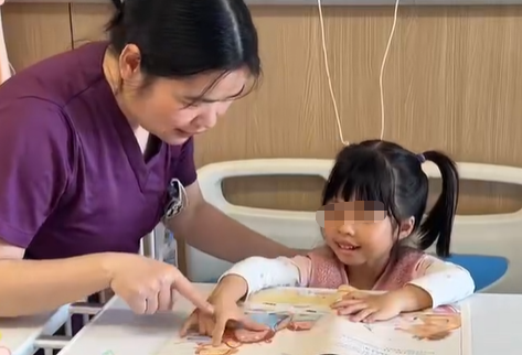 在儿科病房,护士阿姨轻轻坐到患儿床边,打开一本绘本,用温柔的声音讲述《猜猜我有多爱你》或《好饿的毛毛虫》。这便是“天使床边故事会”——医护走进病房,为住院患儿提供一对一的床边绘本共读。医院同时鼓励住院患儿家庭在“华南愈书房”或院内安静角落进行亲子共读,用书香营造温馨的“陪伴时光”。超过40个家庭在书房留下了共读的剪影,不少家长表示:“这是孩子住院以来,我们最放松、最亲密的时刻。”